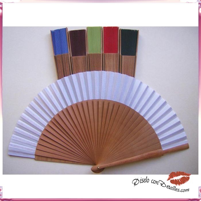 Leques de madeira de pereira polido em várias cores sortidas. Leques feitos à mão em Espanha.