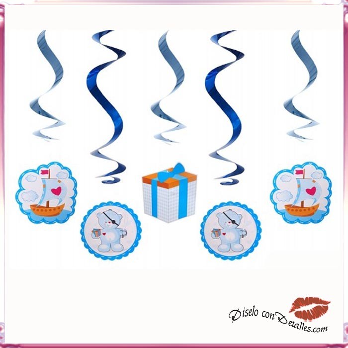 Bonitas fitas decorativas para adornar a festas infantis com detalhes de barco, ursinho de pelúcia e caixa de presente com fita.