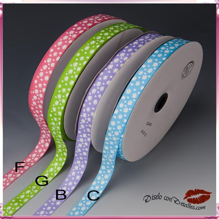 Fita de algodão em várias cores para escolher com flores. Ideal para decorar expositores, cestas, etc.