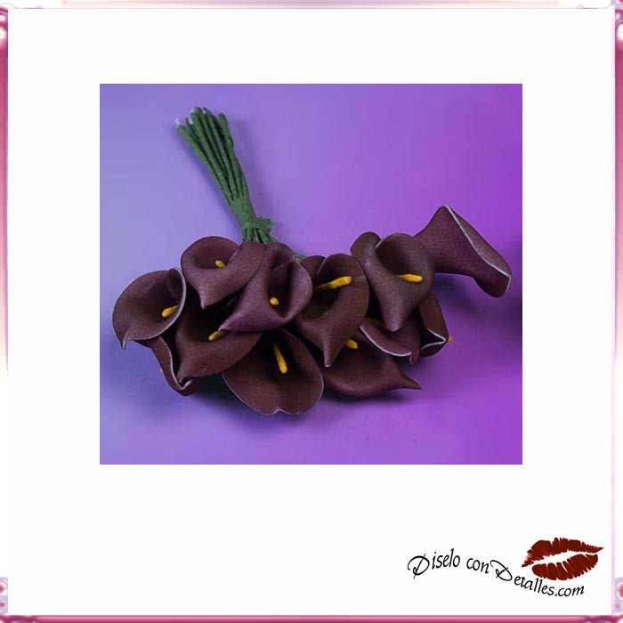 Ramalhete com 12 lírios em granada escuro de borracha eva. Com estos bonitas flores você pode decorar presentes, sacos, caixas, cartões, etc.