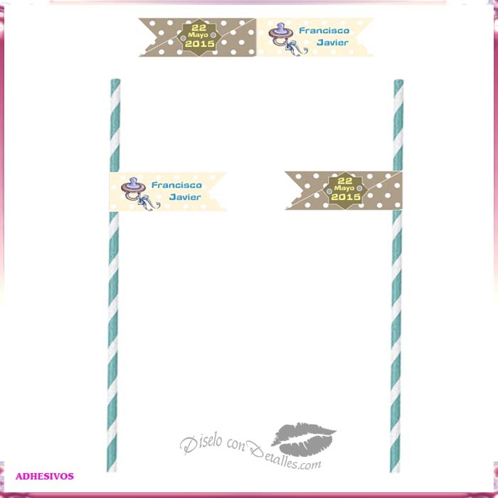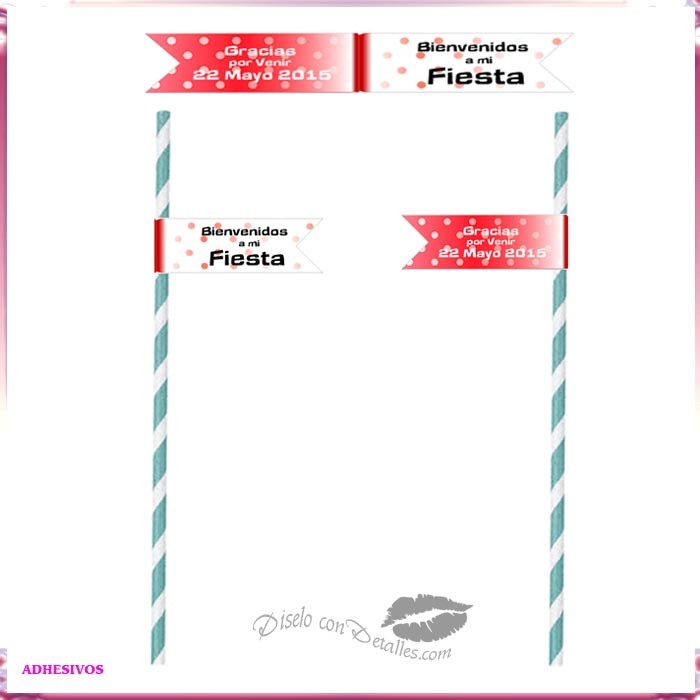 Badeirolas para palhas. São uns Autoclantes de Qualidade feitos en vinil ou PVC personalizável e servem para ser postos nas palhas das suas celebrações.
