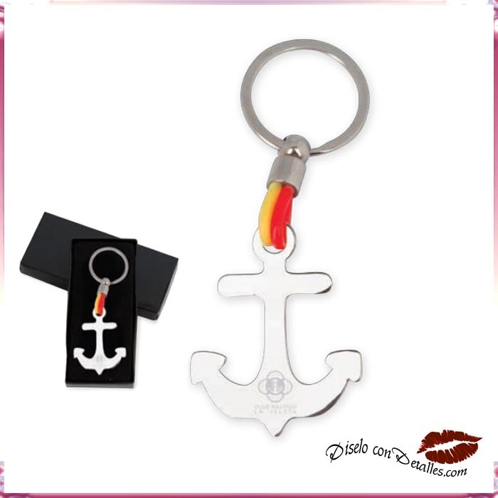 Chaveiro de Metal com forma de Âncora com cordão de Bandeira Espanhola.