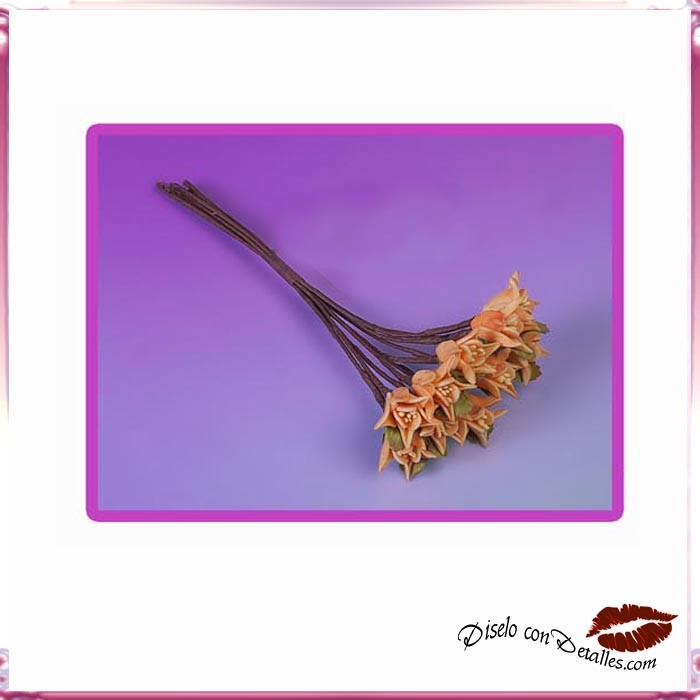 Ramalehetes com 12 flores em um belo cor salmão. Ideais para decorar detalhes, cestas, sacos, caixas, cartões, etc.