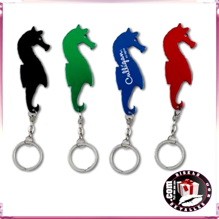 Chaveiro Abridor de aluminio com forma de cavalinho de mar em 4 cores a escolher