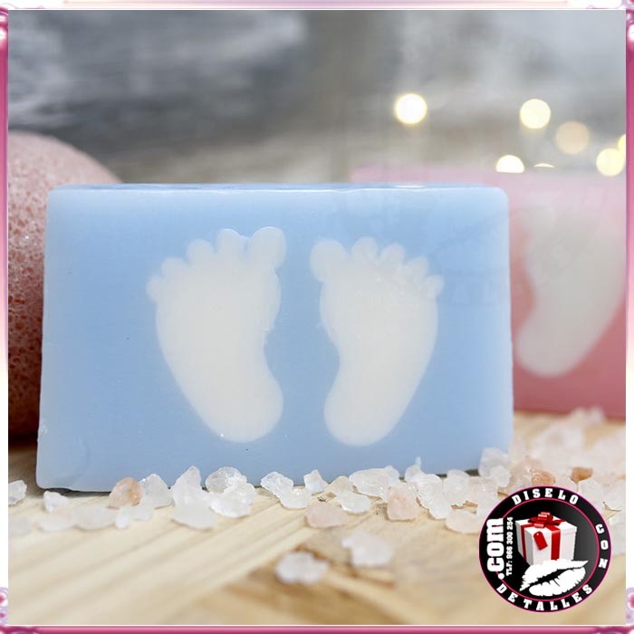 Sabão de design azul de pés brancos. Perfeito para o batismo, decorar o banheiro das crianças ou como um presente. Seus convidados vão adorar este sabão, bem como o seu incrível aroma de manga que é extraordinário.