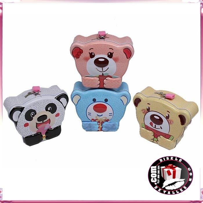 Megalheiros de metal em forma de urso em cores e desenhos sortidos.