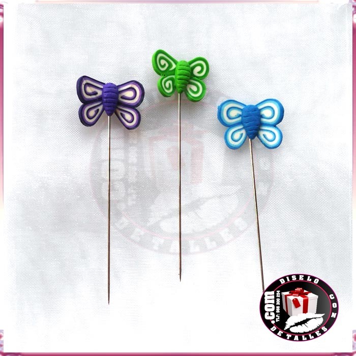 Alfinetes ou agulhas com borboletas de resina para presentes de casamento.