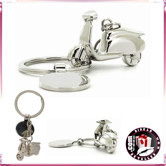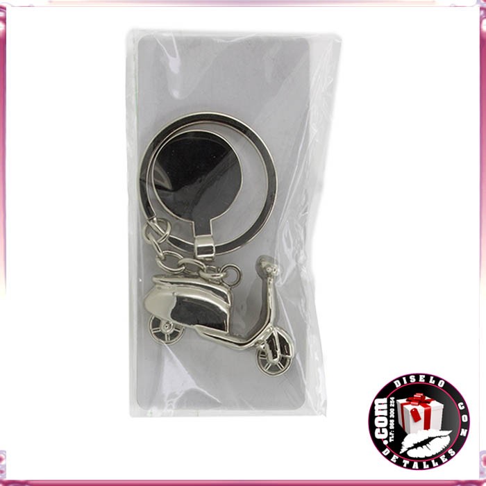 Chaveiro scooter em metal com medalha tambem em metal brilho ideal para gravação Laser e ser ofrecidos como obsequio publicitario ou detalhe do evento.