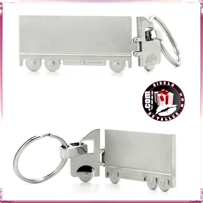 Chaveiro trailer em metal ideal para gravação Laser e ser ofrecidos como obsequio publicitario ou detalhe do evento.