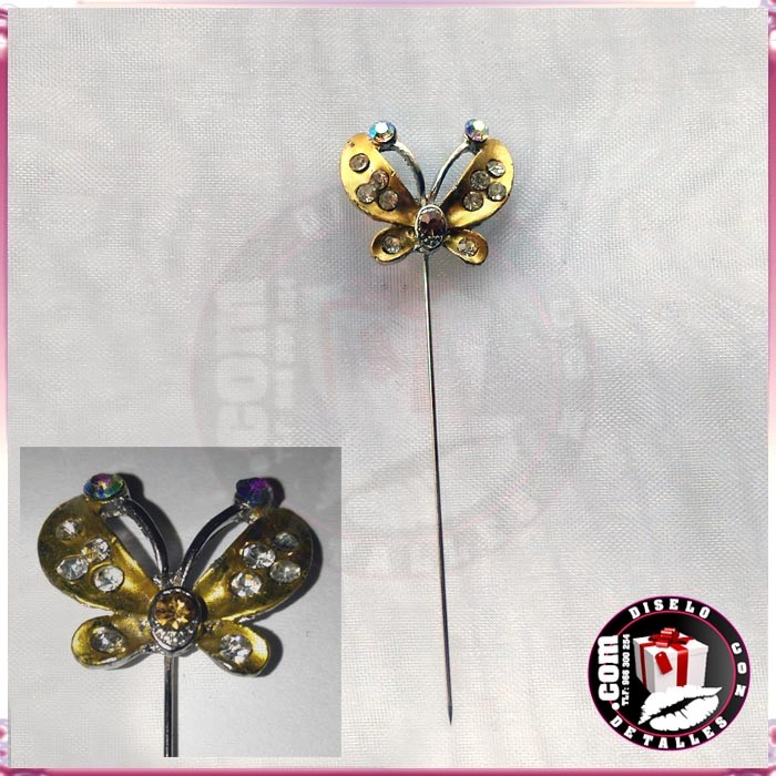 Alfinetes ou agulhas borboleta dourada com brilhos para presentes de casamento. Caso desejar tambem os protetores o tampas, pode adicionar no painel a direita em opções.