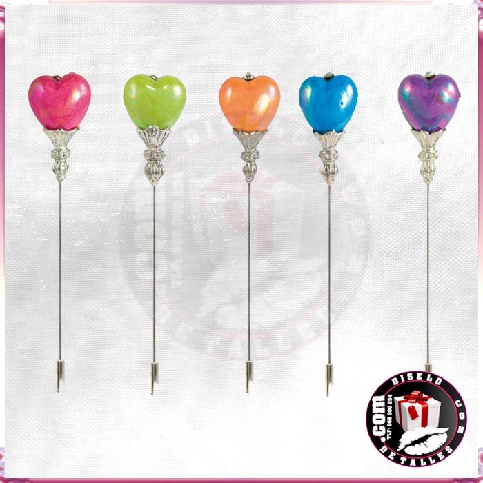 Alfinetes ou agulhas coração em cores sortidos para presentes de casamento.