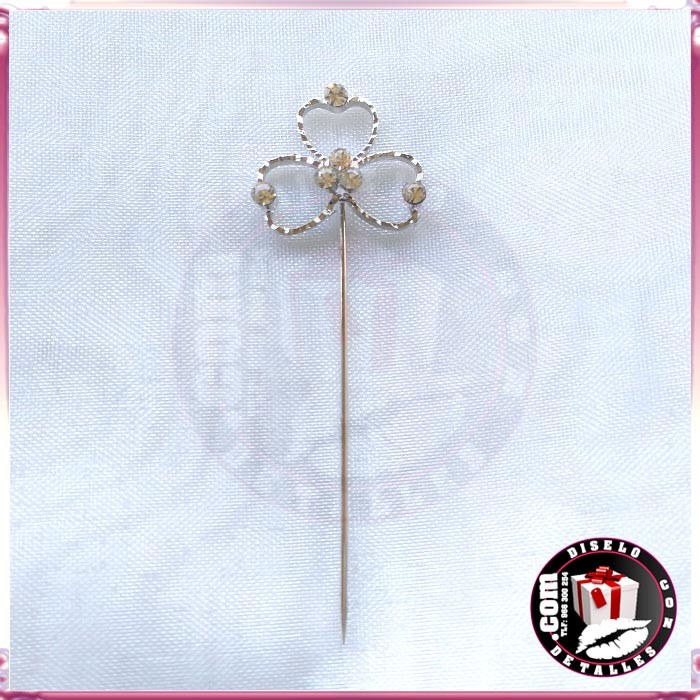 Alfinetes ou agulhas trevo com brilhos para presentes de casamento.