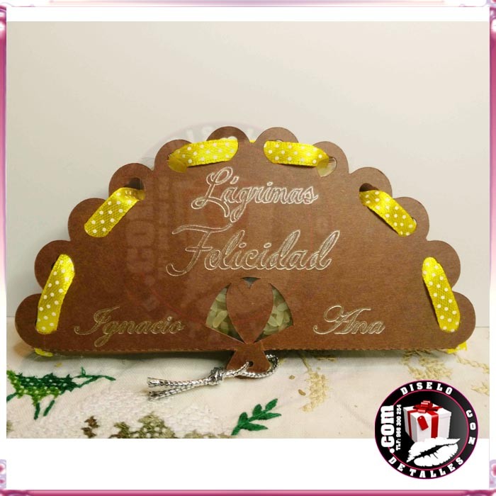 Um bonito design para dar o arroz ou lenço aos seus convidados, totalmente personalizado.